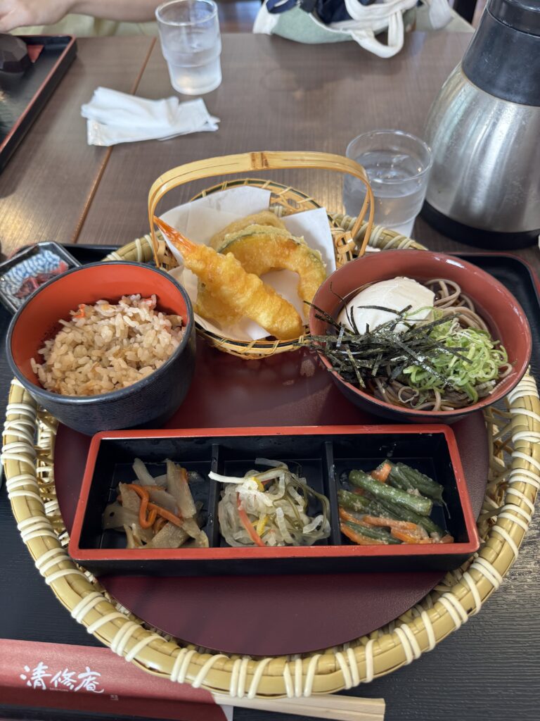 お昼は再び嵐山に。50分の昼休憩なので急いでお蕎麦屋さんでランチを食べてバスに戻って移動中に暑さでへとへとで爆睡する。