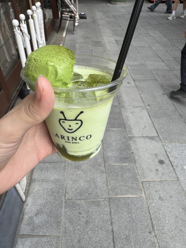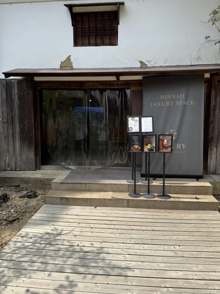 次の仁和寺で案内してくれた和尚さんが松葉杖🩼で痛々しい中でもちゃんと説明していてボケもあって短かったけどお話しを聞けて良かった。仁和寺にオシャレなカフェがあって涼みながらアイスを食べる間少し涼めて休憩出来た。
