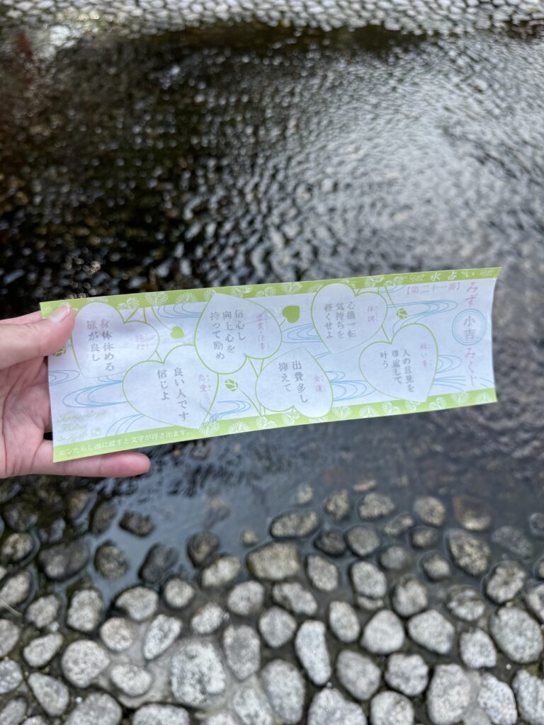 最終日の朝は9:00集合なのでゆっくり出来ました。2日目の朝食ブッフェも料理も少しずつ種類を変えてくれてるので美味しくいただきました。ホテルを発つ前に土産物の宅配便も迷った末に送ることにする。チェックアウトしてバスに乗って下鴨神社⛩️ヘ。神職さんのやや長めの丁寧な解説を聞いてフリータイムに水占いをしたり御守りや御朱印などいろいろもらって神事も少し見学する。お土産物のお店には力を入れていないみたいでちょっとびっくりする。善光寺のように商売っ気がないみたいだけどそれでも池田理代子さんとのコラボ商品とか少しあって面白かった。