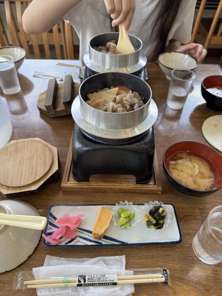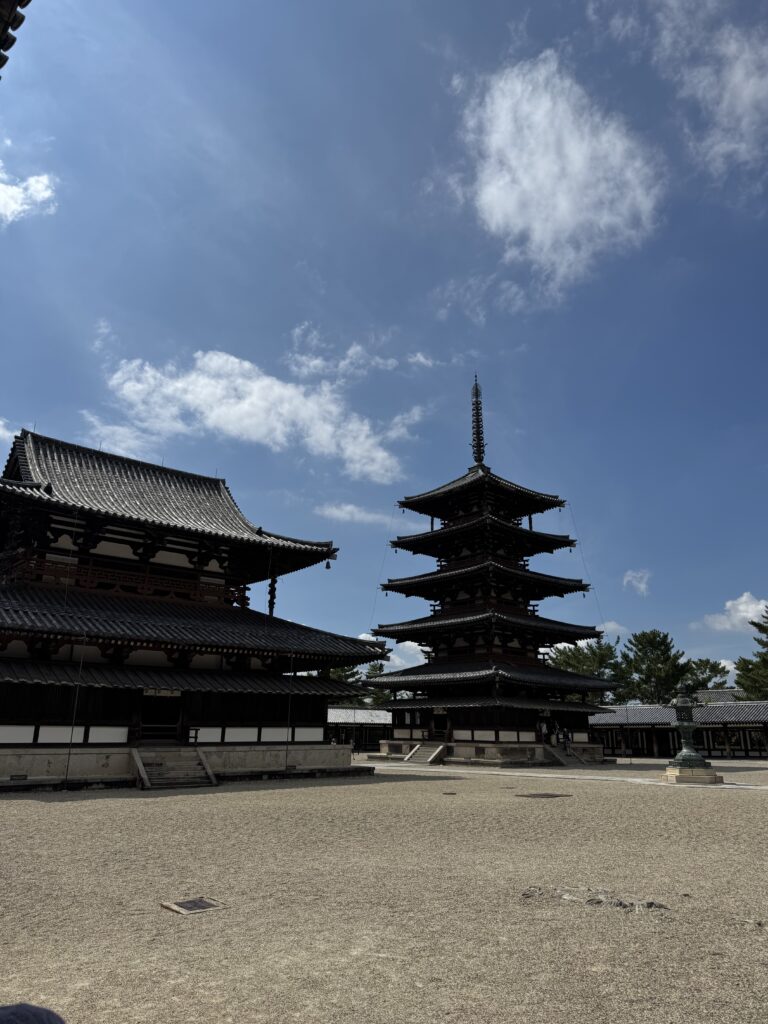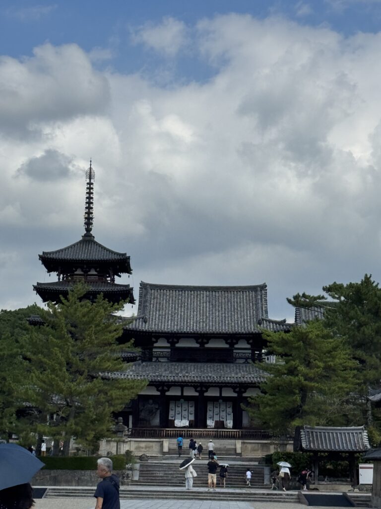 朝はパパさんが7:00少し前にノックして起こしてくれて朝ごはんを食べて8:30集合だと紙を出して言うので慌てて支度する。でも急いで行くと9:00集合だと判明して奈良駅でスーパーに寄ったりモスでナゲットやカフェオレを買ったりして涼む事が出来た。バスの座席は最後部でめちゃくちゃ快適だった。真っ直ぐ法隆寺に向かってガイドさんの案内を聴きながらゆっくり法隆寺を堪能させてもらった。思った以上に大きな規模ですごく良かった。さらにいつもより空いてるらしいのでじっくり見ることが出来てラッキーだった。欲しかった法隆寺のご朱印帳もクレカで買えた。見学後に法隆寺を眺めながらオプションのランチを食べた。オプションを頼んでもらって良かった。釜飯も美味しかったので大満足。食後の抹茶のソフトクリーム🍦も美味しかった