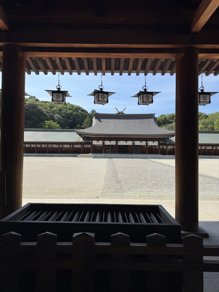 法隆寺の後に橿原神社⛩️に行くと広々していて混む時はめちゃくちゃ混むと聞いて今日はガラガラで本当にラッキーだった。その後トイレ休憩で針と言う道の駅に寄ってくれて奈良パンが売り切れてたけれど草餅や柿の葉寿司を買えてうれしかった。ファミマでちょうどいいサイズの奈良土産もパパさんが見つけてくれたから妹にも購入出来て良かった。橿原神社から三河安城までの道中は時々渋滞していたものの添乗員さんのお話を聴いたりして意外にもちょうどよい時間に着いた。順調だったけれど三河安城駅で新幹線が遅延していて少し待ってる間に添乗員さんが教えてくれた万博会場からバス🚌でUSJに向かうバスの予約をする。遅延したけどグリーン車だったのでめちゃくちゃ新幹線は快適だった。ブランケットがあって本当に助かった。