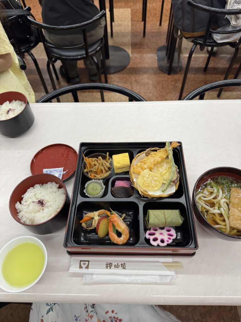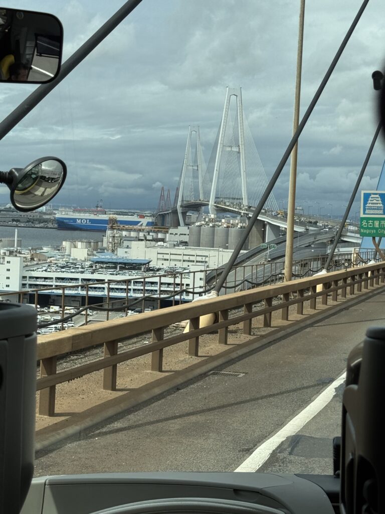 先週に引き続き今回も東京駅では早めに着いてツアーの受付してコンビニ行く時間もあった。無事新幹線にも乗れて昨日購入した野菜ジュースやサンドイッチ🥪を朝ごはんに食べながら無事三河安城駅に着く。三河安城駅でバスに乗って名古屋港の上を走る吊り橋を渡りながら添乗員さんがレゴランドや港や亀山工場や長島スパーランドなどの解説してくれて面白かった。渋滞しつつ1時間以上高速を走って名阪関ドライブインでランチ。パンや唐揚げや土産物を購入して伊勢うどんをフードコートで食べた。柔らかいうどんも好きなので美味しかった。