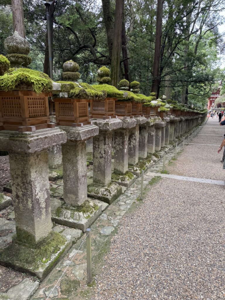 春日大社はガイドさんがたくさん喋ってくれて面白かった。ランチもオプションでガイドさんのお店で食べる。温かいうどんが美味しかった。結構暑くて歩き疲れる。お土産のお店も激混みで涼む場所もないから早めにバスに🚌乗り込む。すぐ興福寺に着いて国宝殿を見学する。有名な阿修羅像を見て素敵なグッズ等があるミュージアムショプを見て修復工事中で五重塔は見れず御朱印欲しくて向かうと大行列で御朱印は挫折する。トイレも無くて(あったけど探しきれず)暑いのでバスに乗って涼む。