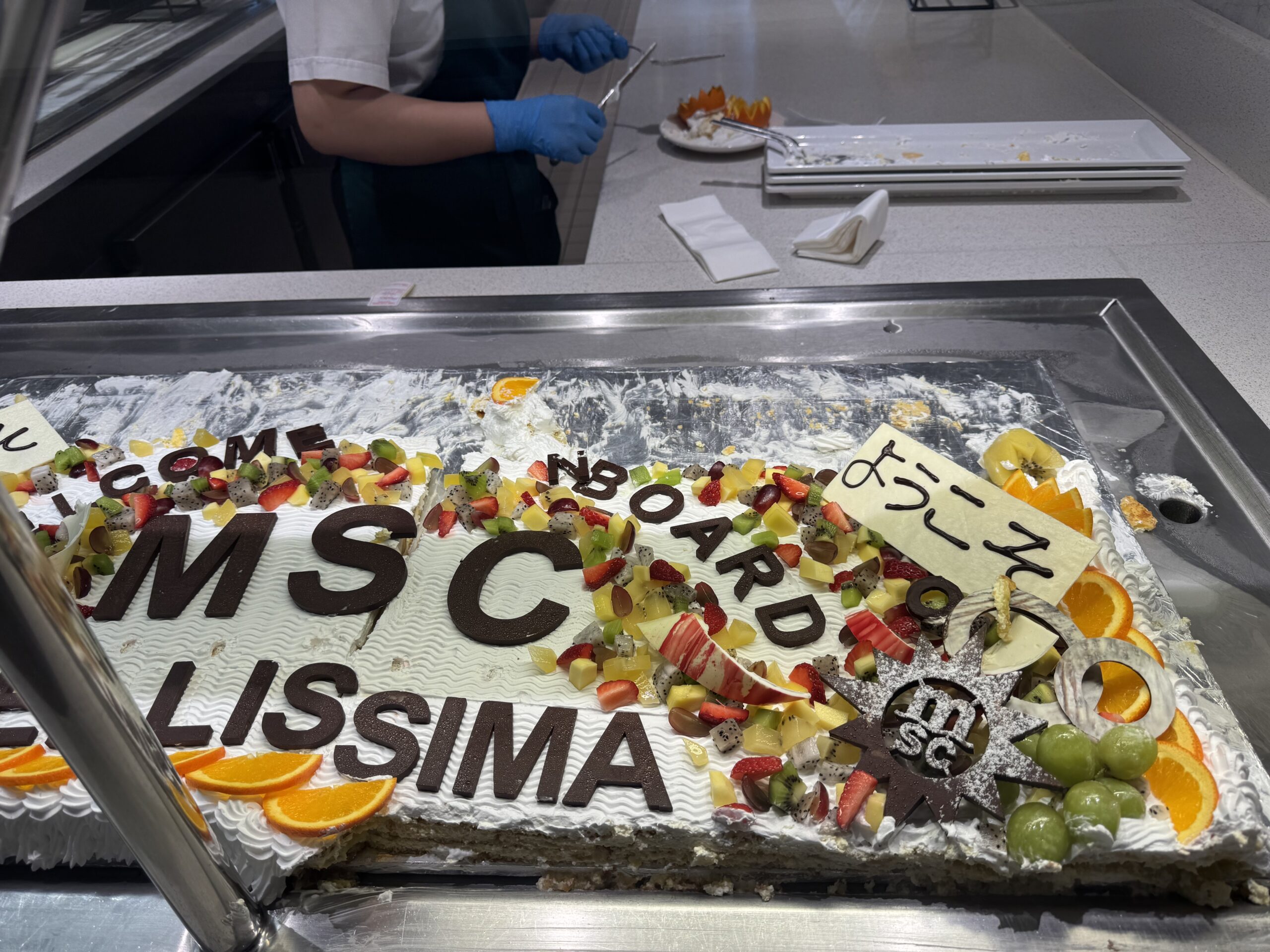 今日は9:50発の電車が5分位遅延しても11:00には乗船出来た。乗船迄は最寄駅→徒歩で東京国際ターミナル→チェックイン(パスポート渡して乗船券提示してクルーズカード受取)→乗船の間が距離も時間も短くてあっという間でびっくりする。しかも船の入り口が船の5階か6階メインフロアだったので去年とは比べ物にならないくらいラクで本当に快適なスタートになる。パパさんのクルーズカードのバーコードがかすれていたのでウェルカムランチを食べている間にパパさんが離席して一瞬で手続き終わって戻ってきた。食事の時は始めは空いていたブッフェがいつの間にか正午過ぎ以降に大混雑して4人がけテーブルを2人で占拠していたのでお隣の席を開けてご夫婦に譲る。仙台から来た初めてのご夫妻でとても素朴で感じのいい人達でおしゃべりしてるとあっという間に席が空いて訓練が始まる時間になってお別れする。訓練前に部屋に行くと何故かパパさんのスーツケースだけ届いていてパパさんがさっさと荷物を片付ける。訓練後に船内を散策してジャパネットのフィギュアと写真を撮り合いっこしたりして部屋に戻って一休みする。私のスーツケースは17:30頃に無事到着。パパさんがシャワー🚿浴びている間に私のスーツケースの荷物を片付けて19:30のディナーまでまたまったり。その後出航セレモニーを見に行く。初めて見たけれど演奏🎶を聞いて「いってらっしゃい」と手を振ってくれる姿を見てちょっと感動する。ディナー🍽️はギリギリに行った。6人用のテーブルで2人は欠席。同席のご夫妻はリピーターさんで私達と同じく2度目のクルーズで去年は函館入港出来なかった時でゲストは歌手の秋川さんと漫談の神田さんだったそう。毎回いろいろ芸能人を手配してくれてびっくり。ディナーの時に前回知り合った方がわざわざ来てくれて久しぶりの再会。ディナーの後でニュージーランドの大道芸人さんのショーを見て就寝。